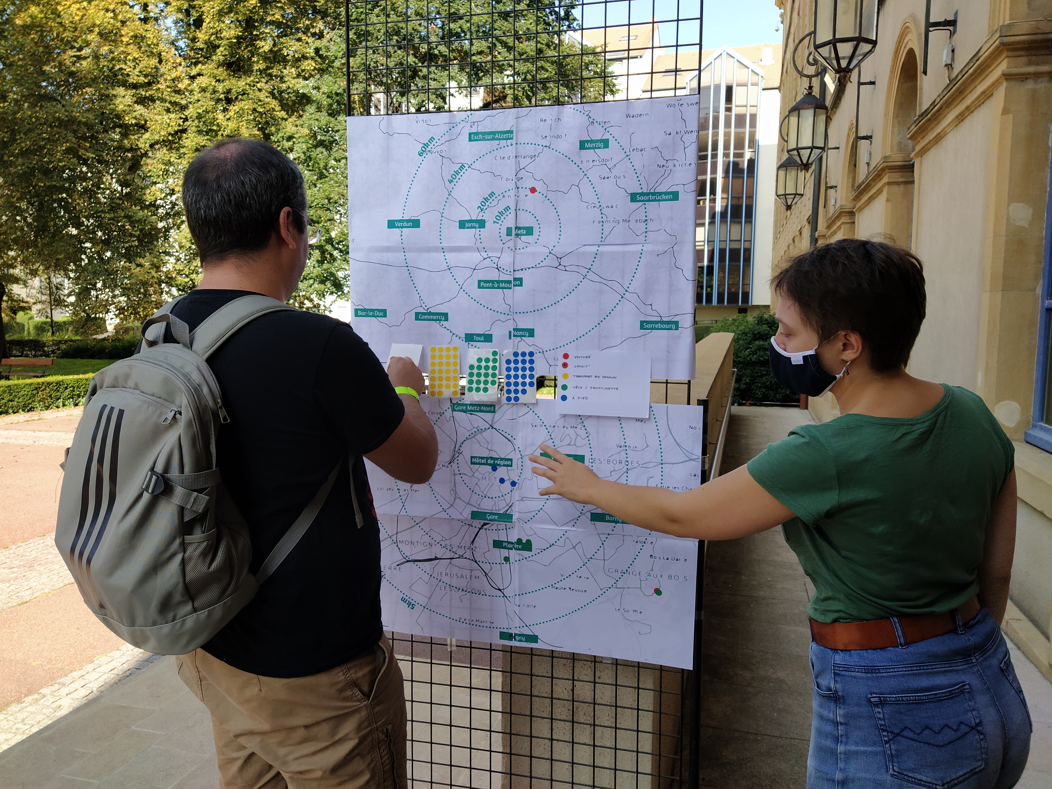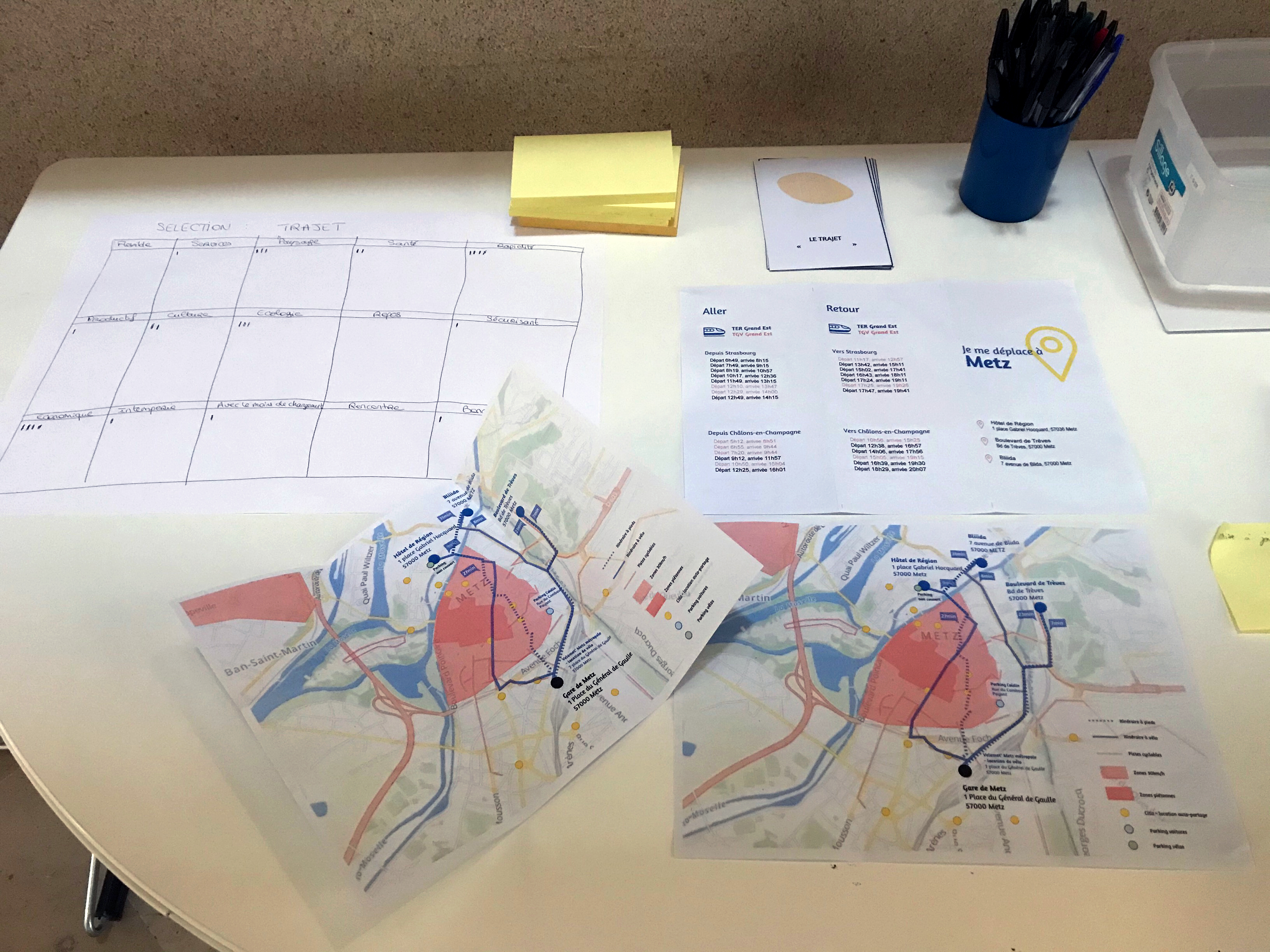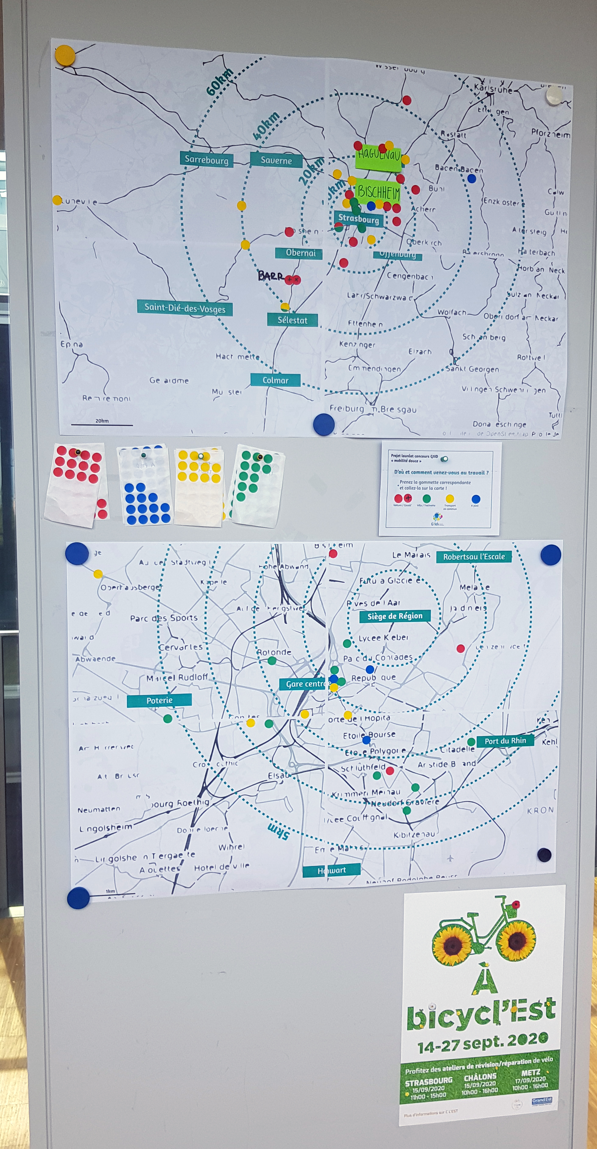 Suite aux ateliers, nous avons créé différents outils pour confronter les premières idées émises et poursuivi le travail de recueil des besoins grâce à ces outils intermédiaires. Nous avons profité de l’évènement Bicycl’Est pour cela.